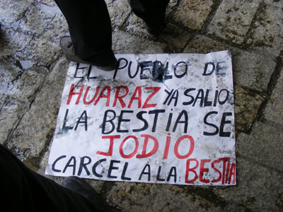 Le peuple de Huaraz est dans la rue, la bête est emmerdée, prison pour la bête (référence au président de région)