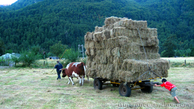 Alejandro encourage ses bœufs par des cris rauques déviant