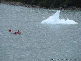 Slalomer entre les icebergs en kayak sur un lac glaciaire,
