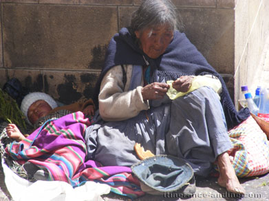 cathédrale de Copacabana, une abuelita fait l'aumône, humble