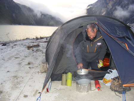 Nous bivouaquons deux nuits à la Laguna Paron.