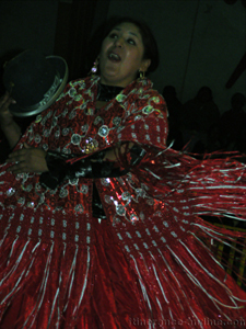 la pollera (jupe) et des tresses jusqu'à la ceinture.