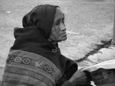 Aymaras (sandale, jupe de tissu grossier, châle et vieux chapeau