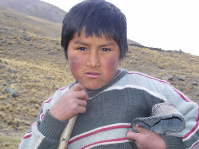 Juan a 10 ans et vit dans une ferme isolée au cœur de la Cordillère Royale. Une petite chaumière au mur de pierres grossières et au toit de chaume, à 4500 mètres d’altitude, au milieu de la pampa. La semaine, Juan va à l'école au village le plus proche situé à 1 heure de route. Le week-end, le petit homme se transforme en berger et surveille le troupeau d’alpagas familial. Une vingtaine de bêtes, c’est du travail, car les pâtures ne sont pas grillagées et l’alpaga est coquin… heureusement, ses deux chiens le secondent bien dans son travail. Pendant ce temps, son père surveille un peu plus haut dans la montagne un troupeau de moutons, et sa maman s’occupe de la maisonnée Le plus difficile, c’est de surveiller le troupeau à la saison des pluies, du mois de novembre au mois de mars. Il faut alors rester toute la journée sous une pluie battante !