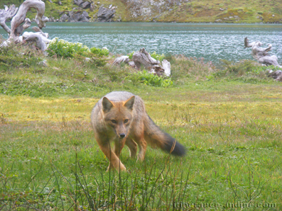 Renée vit en Terre de feu, dans une forêt de Lengas située au dessus de la secrète Laguna del Caminante. Elle affectionne particulièrement le campement sauvage situé aux abords du lac, car il y a toujours des voyageurs « bien intentionnés » pour partager leur casse-croute avec elle. Renée a peur des humains, mais l'attrait pour un bout de jambon est trop fort, et elle a donc pour habitude de venir faire un tour chaque soir au moment de l'arrivée des campeurs. Elle évalue d'abord la situation, observe méticuleusement à qui elle a affaire, s'approche à pas de velours au bruit d'un sac plastique remué ou si elle voit d'hypothétiques victuailles laissées par terre alors que les humains sont occupés à monter leur tente. Mais au moindre mouvement, elle esquisse une fuite, la croupe baissée, telle une bête traquée. Renée à la grâce du félin, le minois d'un chien et l'esprit sauvage du loup. Si on lui refuse la pitance désirée, elle s'assoit précieusement un peu plus loin pour faire sa toilette en gardant le campement du coin de l’œil.