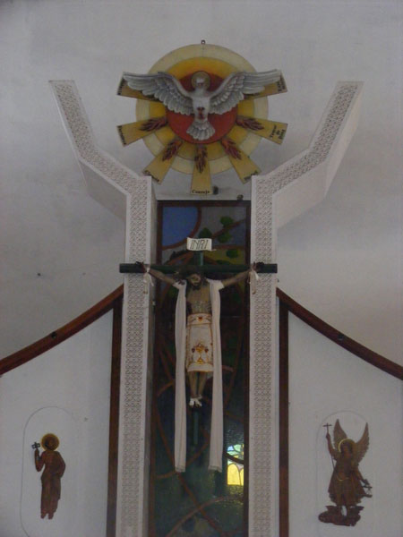 dans l’église de Caraz. Sur l’autel, au dessus du Christ